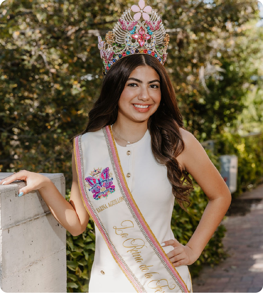 Growing up surrounded by the vibrant traditions of Fiesta and the Rey Feo Organization, Karina has always admired the role of Reina de la Feria de las Flores. Inspired by the joy and unity this Queen brings to the community, she aspires to continue this legacy by representing the organization with courage, compassion, and pride. Karina is passionate about bringing people together and hopes to inspire young girls, just as past Reinas inspired her.